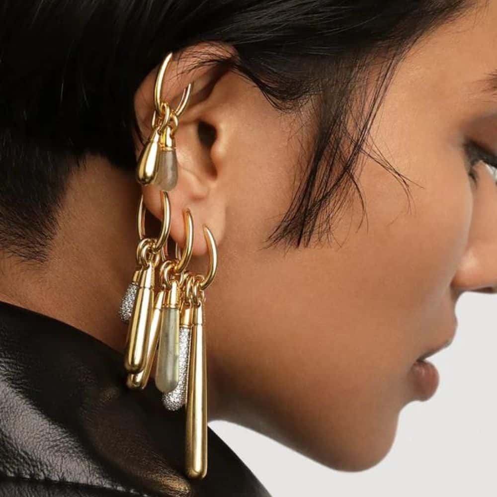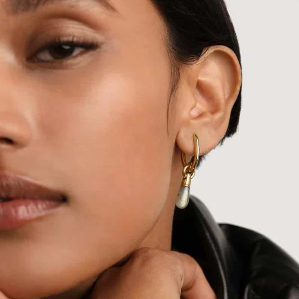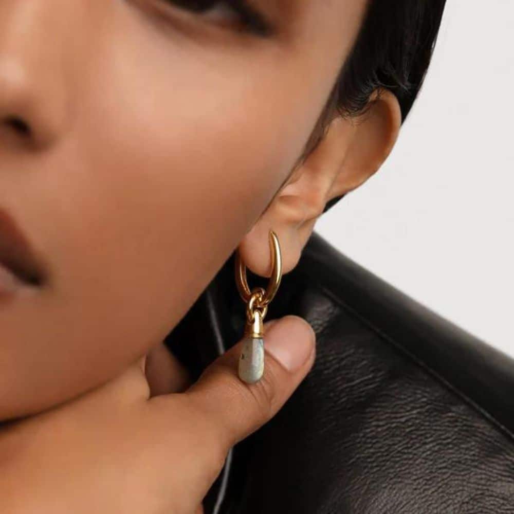 Orecchino a cerchio con un piccolo ciondolo con pietra grigia a goccia