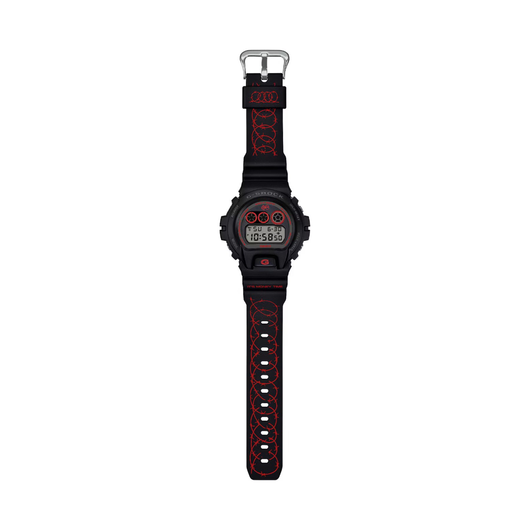 La partnership tra Sfera Ebbasta e G-SHOCK fonde perfettamente il percorso creativo dell’Artista con la tradizione e l'innovazione ingegneristica di G-SHOCK. Audace e meticolosamente rifinito, questo orologio è l'accessorio definitivo per chi vive al massimo ed è #BuiltDifferent. Questa esclusiva collaborazione vede Sfera Ebbasta reinterpretare e personalizzare due casse storiche di G-SHOCK, la serie 5600 e 6900. Ogni dettaglio racconta una storia, il cinturino è caratterizzato da un motivo a filo spinato, aggiungendo un tocco di streetwear al design indistruttibile di G-SHOCK. Il mantra “It’s Money Time” è impresso sul cinturino, il logo $€ è inciso con cura sul fondello ed è presente sulla cassa dell’orologio. La retroilluminazione, personalmente scelta dall’artista di colore rosso, tinta distintiva e simbolica di Sfera Ebbasta, svela magicamente il logo $€ sul quadrante. Tutti i dettagli conferiscono esclusività a questi modelli, rendendoli unici. Sfera Ebbasta ha infuso nel design di questi orologi un'energia unica, scegliendo come palette il rosso intenso e il nero, con elementi cromatici inversi per un look che non passa inosservato. Due modelli iconici, due colorazioni speculari, pensati per chi vuole ridefinire le proprie regole.