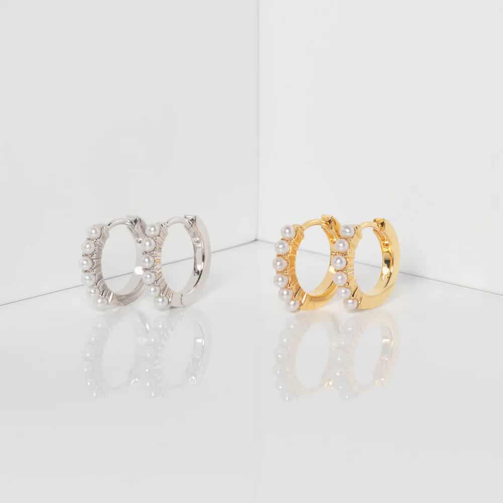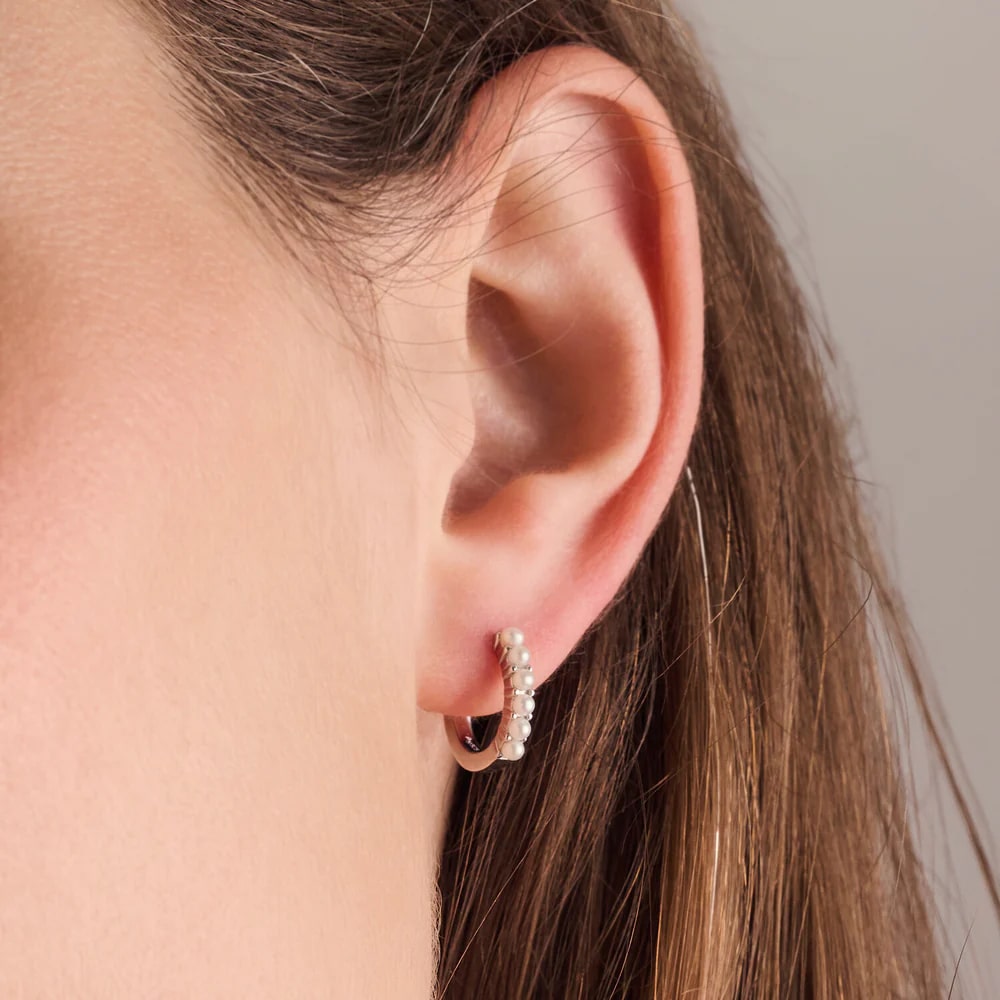 Orecchini realizzati in argento sterling 925 con rodio, superficie lucida e perle d'acqua dolce lucide.