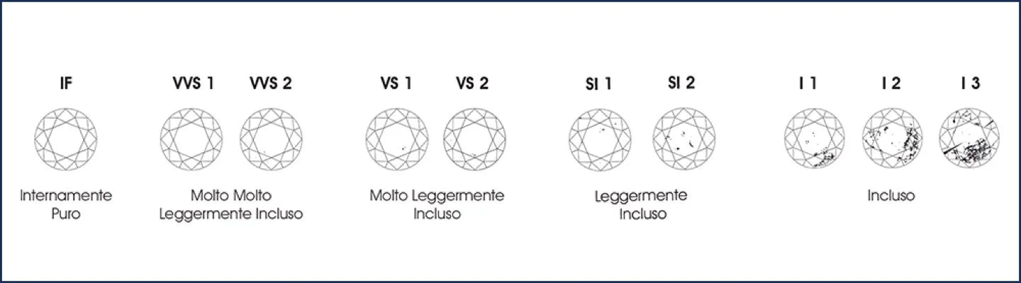 Clarity refers to the presence of inclusions (internal imperfections) or blemishes (external imperfections). The GIA scale ranges from FL (Flawless) to I (Included, with inclusions visible to the naked eye). Most diamonds contain small inclusions that do not detract from their beauty but do affect their value.