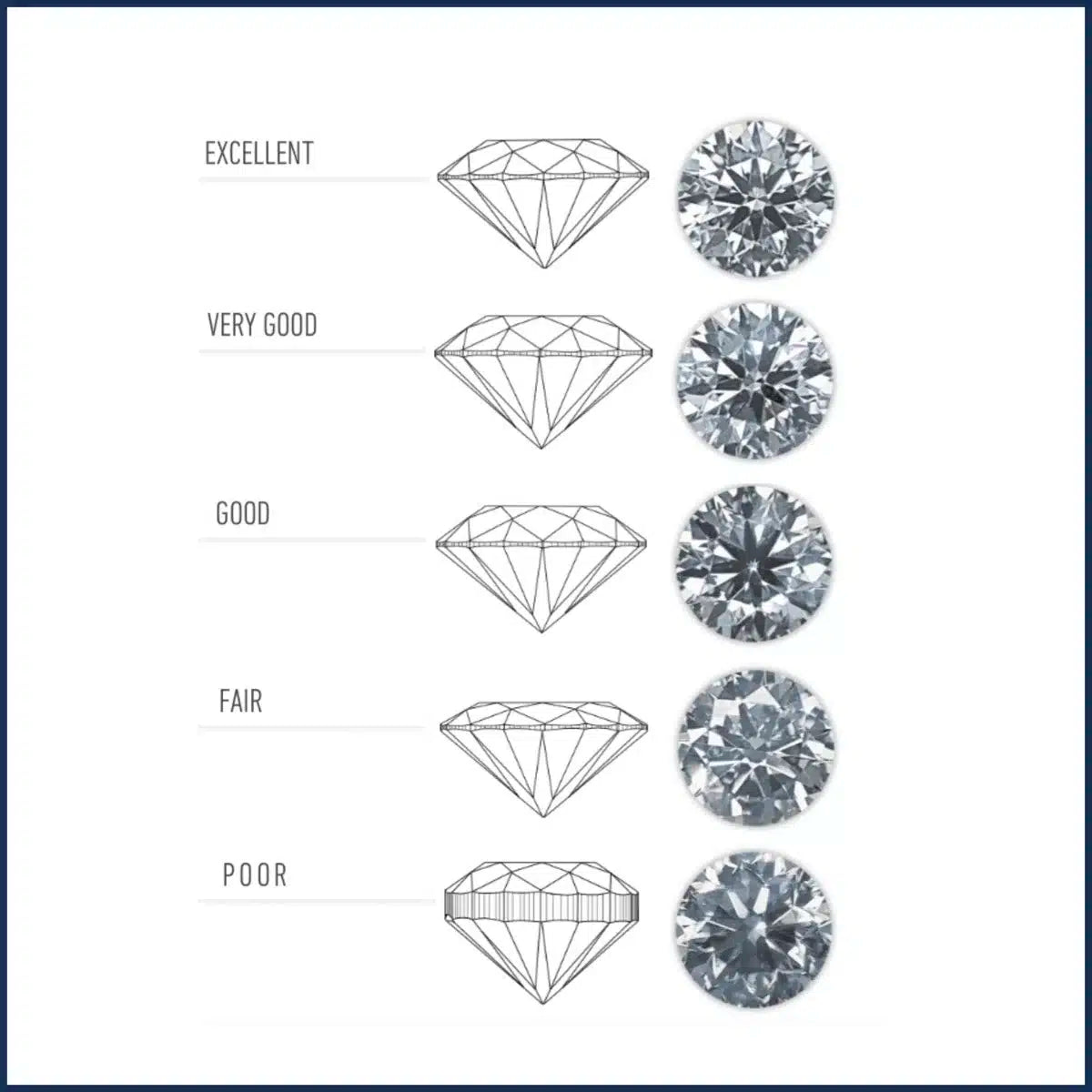 Cut is the only parameter that depends on the hand of man. We're not talking about the shape (round, oval, princess, etc.), but the precision with which the diamond was cut to reflect light. An excellent cut allows light to enter the stone, reflect on the internal facets, and emerge with a unique glow: what we call "fire" and "brilliance."