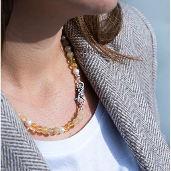 Citrino, quarzo rutilato e perle ti daranno la giusta energia per illuminare le tue giornate.Chiusura non inclusa