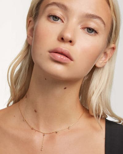 Morning light breaking through the treetops. The silent sound of nature. The Five collection reflects the experience of reconnecting with our roots and celebrates the journey of ephemeral and eternal beauty. In pursuit of beautiful realities and distancing ourselves from the urban notion of jewelry, the collection is entirely inspired by this graceful atmosphere. This design features five protagonists, the five colored stones that embellish it. 925 sterling silver with an 18k gold plating pairs with sapphire-blue corundum, rhodolite, golden yellow, pure white, and champagne hues, transforming the piece into a delicate jewel, symbolizing the innate beauty of nature. The pieces in the Five collection follow an irregular aesthetic that reflects the essence of nature, achieving the perfect balance of imperfect patterns. We connect with naturalness, creating the eternal story of our free spirit. We become descendants of dust, opening the doors to a new era where the power of beauty relies on the character and wild soul of women.