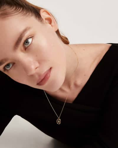 The power of a name knows no bounds. A name carries truth, it tells a story. With self-love as a permanent state of mind, this collection embodies uniqueness and celebrates confidence within a new design framework. Harking back to the 1990s and reimagining their enchanting nostalgia, floating letters rise as the ultimate personal symbol: a new reality is born from a piece of jewelry that highlights your true self and speaks your name out loud. Labradorite, tiger's eye, mother-of-pearl, and colorful crystals blend in a luminous, slightly squared oval that holds your initial like a treasure, creating a timeless necklace that will become your personal icon. As if floating in mid-air, an 18-karat gold-plated initial hangs within an amulet, a prominent 925 sterling silver piece that will transform into a bold statement of intent. The nuances and veining surrounding the semi-precious stones are exclusive characteristics of each individual necklace, making each jewel truly unique in the world.