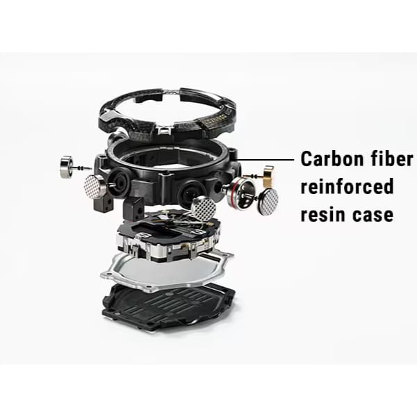 Thanks to its exceptional durability, resin is the ideal material for watches. The case made of carbon-reinforced resin—another particularly robust material—is even more resistant to shocks and guarantees a high level of protection from external factors. The result is extraordinary durability.