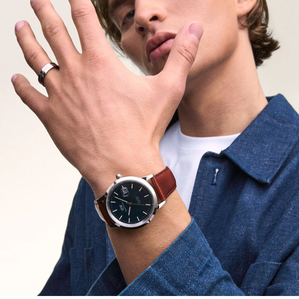 ColorSilverMaterial316L stainless steelDial colorBlueMovementJapanese automatic movementBand materialGenuine Italian leatherBand colorBrownBand typeLeather strapInterchangeable strapsYesWater resistant10 ATM water resistantDial materialEnamel