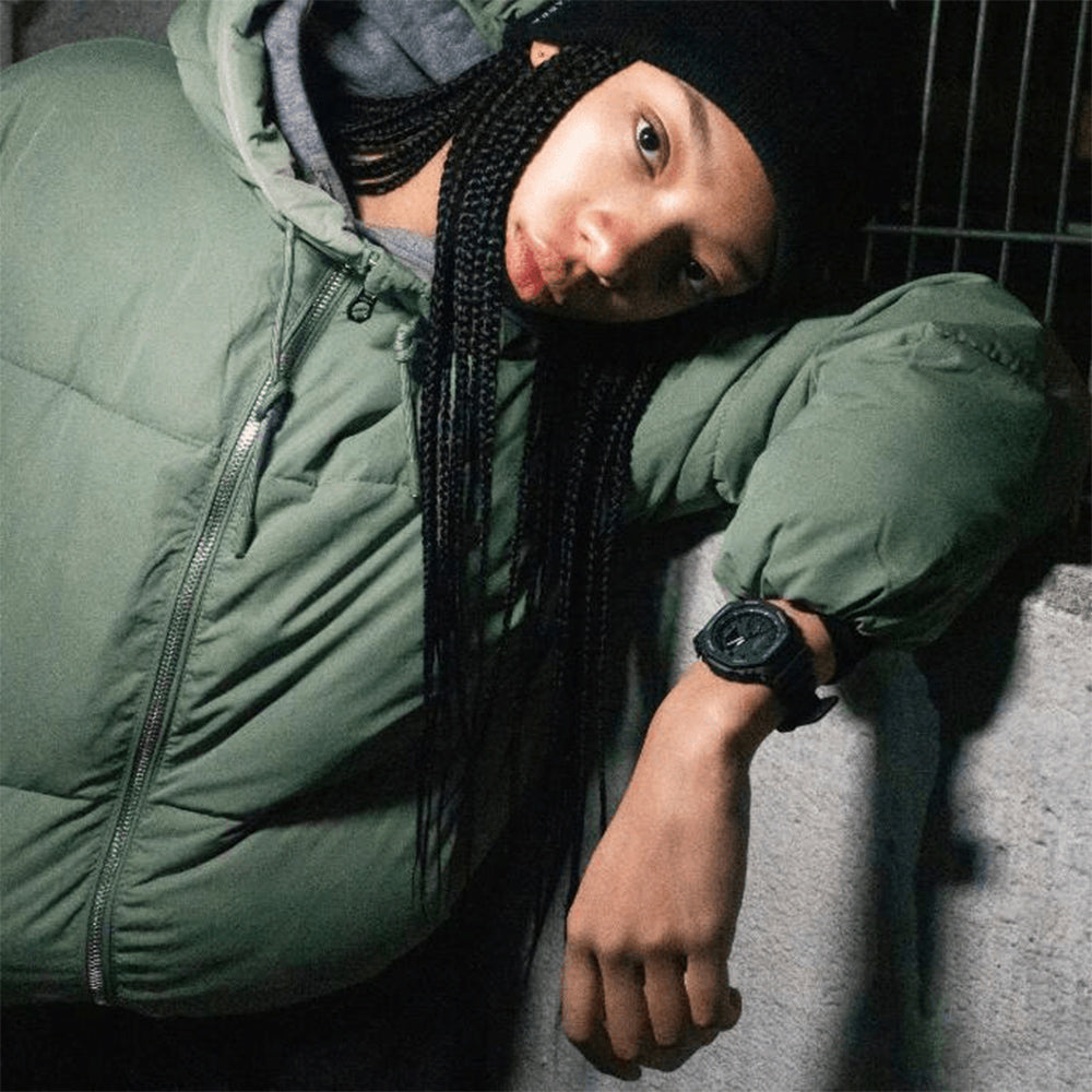 Choose the elegance and comfort of the slimmer and more compact analog-digital GMA-S2100 model, featuring modern green accents. The flat surface and simple bar indices combine in a clean and satisfying design. An original touch of green in details such as the logo, the bar indexes and the LCD display makes this watch the perfect accessory for a street style.World TimeWorld Time 31 time zones (48 cities + Coordinated Universal Time), Daylight Saving Time On/OffStopwatchHundredths of a second stopwatch Measurement range: 00'00''00~59'59''99 (for the first 60 minutes) 1:00'00~23:59'59 (after 60 minutes) Measurement unit: 1 hundredth of a second (for the first 60 minutes) 1 second (after 60 minutes) Measurement modes: Elapsed time, split time, 1st and 2nd place timesTimerCountdown timer Measurement unit: 1 second Countdown range: 24 hours Countdown start time setting range: 1 second to 24 hours (1-second increments, 1-minute increments and 1-minute increments) 1-hour increments)Audio reminder / Hourly tone5 daily audible remindersHourly toneLightDual LED light for dial (Super Illuminator, selectable illumination duration (1.5 seconds or 3 seconds), luminescence)LED backlight for digital display (Super Illuminator, selectable illumination duration (1.5 seconds or 3 seconds), luminescence)Light colorLED: WhiteCalendarFull auto calendar (up to the year 2099)Volume muteButton press tone on/offAccuracyAccuracy: u00b115 seconds per monthOther features12/24-hour formatHand tracking function (hands track so as not to block the view of the digital display contents).Regular timekeeping:Analog: 2 hands (hour, minute (hand moves every 20 seconds)), 1 dial (day of the month)Digital: hour, minute, second, pm, month, DateGlassMineral glassAdjustable strap140 to 205 mmMiscellaneousNeobriteCase dimensions (H x W x D)46.2 u00d7 42.9 u00d7 11.2 mmWeight41 gCase and bezel materialCase/bezel material: carbon / resinBandResin strapConstructionShock resistantCarbon Core Guard constructionWater resistanceWater resistant to 200 metersPower and battery lifeApproximate battery life: 3 years with SR726W X 2