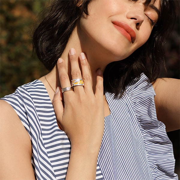 Chain Rings, 12 mm, with a white gold finish. Your ring, finished in France, can be finished with a reversible vinyl. Choose from a variety of colors to match your style...or your daily mood. (Vinyl sold individually.)