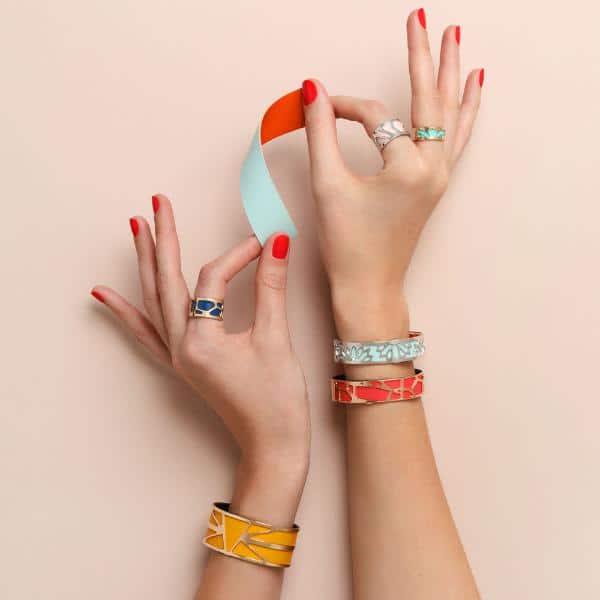 Peacock Bracelet, 14 mm, with a yellow gold finish. Your bracelet, finished in France, can be finished with reversible leather. Choose from a variety of colors to match your style...or your daily mood. (Leather sold individually.)