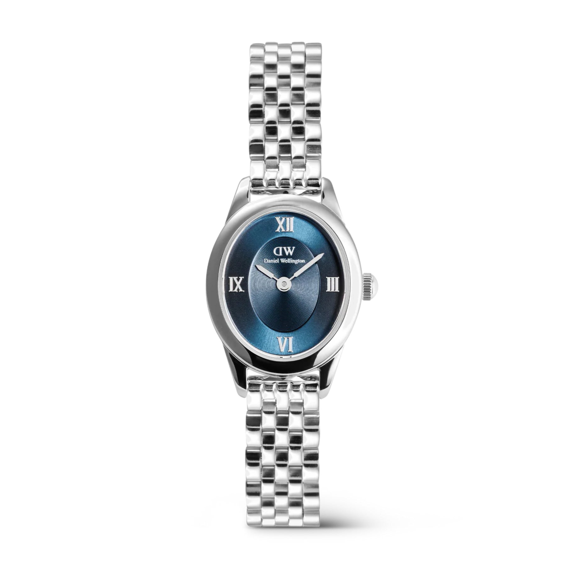 L'orologio Ophelia Mini Watch vanta un quadrante dall'elegante forma ovale che si discosta dagli orologi tradizionali. Questo orologio da donna dallo stile inimitabile sa essere un piacevole inedito. Vanta un nuovo cinturino a maglie a fagiolo e una chiusura a farfalla. La cassa ovale leggermente più corposa esalta la sua elegante silhouette, mentre le anse affusolate garantiscono una transizione fluida al bracciale a maglie. L'orologio vanta numeri romani in metallo incastonati in una trama circolare al centro del quadrante radiale, mentre sia la cassa che il bracciale sono lucidati per creare una finitura scintillante e vistosa.Case Size22x25.5mmLarghezza del cinturino10 mmConnettore del cinturinoSpring BarsColoreSilverMateriale316L acciaio inossidabileSpessore della cassa6 mmColore del quadranteBluMovimento dell'orologioMovimento al quarzo giapponeseColore cinturinoSilverTipo di cinturinoMagliecinturini intercambiabiliSìResistente all'Acquafino a 3ATM (Resistente alla pioggia)SKUDW00100807