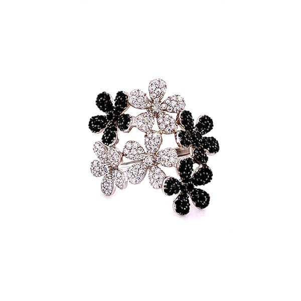 B171AN BLACK AND WHITE ZIRCON FLOWER RING