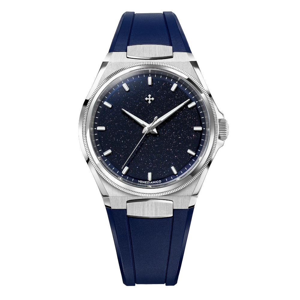 L'Avventurina, utilizzata in questo modello di Arsenale, è un materiale vetroso pregiato scoperto a Venezia nel XVII secolo dai maestri di Murano. È conosciuta per il suo caratteristico scintillio, simile a un cielo stellato, ottenuto aggiungendo piccoli frammenti di rame durante la lavorazione. Un dettaglio che rende unico ogni quadrante, ispirato alla tradizione veneziana.MATERIALE CASSA: Acciaio 316LDIMENSIONI: u00d840mm, da ansa ad ansa 44mmSPESSORE: 9.95mm, vetro inclusoQUADRANTE: Vetro avventurinaMOVIMENTO: Cal. Miyota 9039 AutomaticoVETRO: Vetro in zaffiro con trattamento antiriflessoLUNETTA: Acciaio 316LRESISTENZA ALL'ACQUA: 5ATM (= 50mt)BRACCIALE: Cinturino integrato in gomma con terminale in acciaioSi dice che nel XVII secolo il nome avventurina derivi da avventura , riferendosi a una scoperta fortuita. I vetrai veneziani la ottennero per caso, rovesciando frammenti di rame in una pasta vetrosa blu. Il risultato fu un vetro brillante e cangiante, divenuto simbolo della maestria artigianale veneziana e diffuso in tutta Europa. Oggi, questa tradizione vive ancora nelle fornaci veneziane, dove il fuoco e l'ingegno trasformano la materia in creazioni uniche. Abbiamo reinterpretato questa arte nei nostri orologi, dando nuova vita all'avventurina nei quadranti, dove profondità e riflessi di luce evocano il fascino delle antiche lavorazioni veneziane.